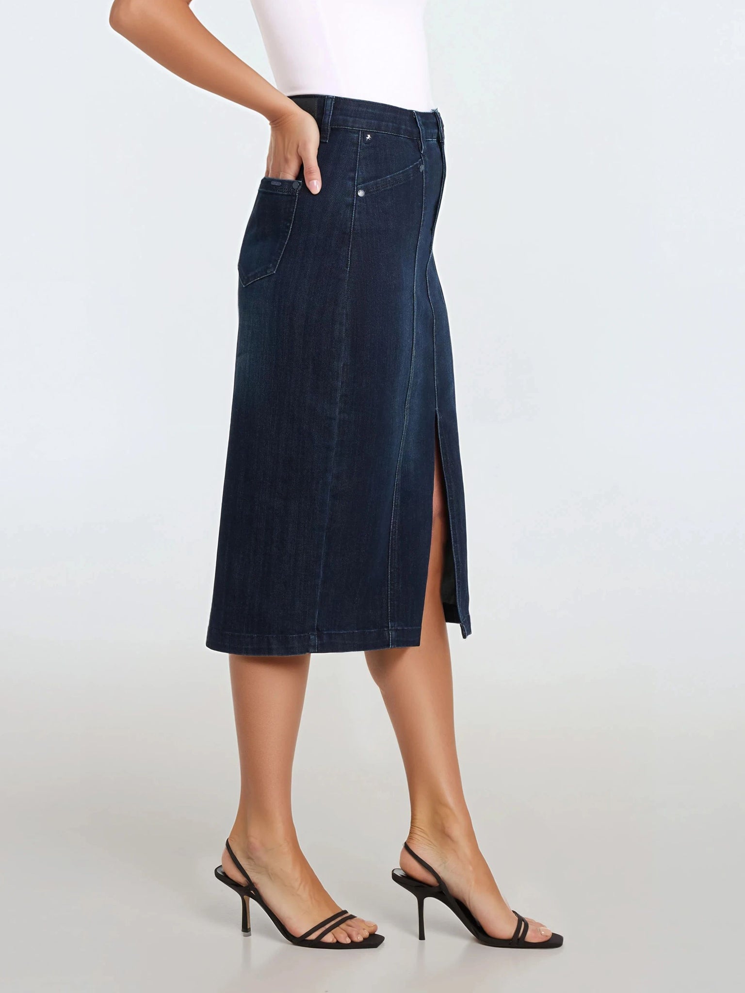 La jupe de denim ALICIA, un essentiel de la saison! Osez cet item clé qui apportera un vent de fraîcheur à votre garde-robe actuelle! Son tissu extensible et sa coupe décontractée vous apporteront confort tout au long de la journée!