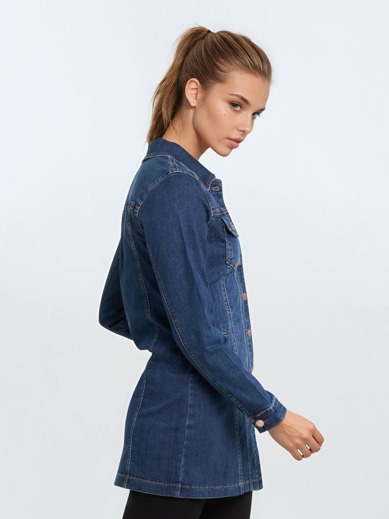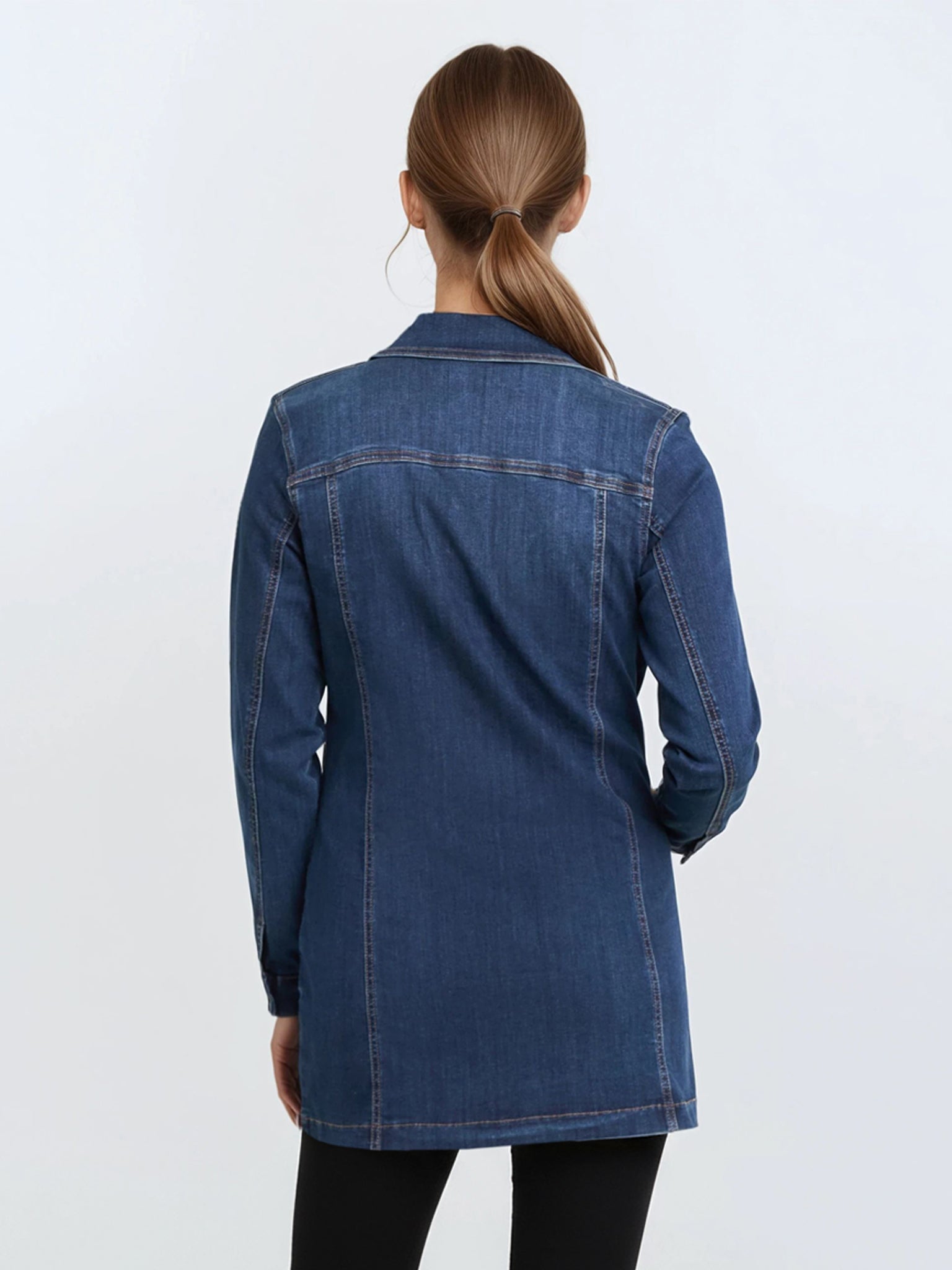 Une veste allongée en denim passe-partout qui saura mettre en valeur toutes vos tenues!