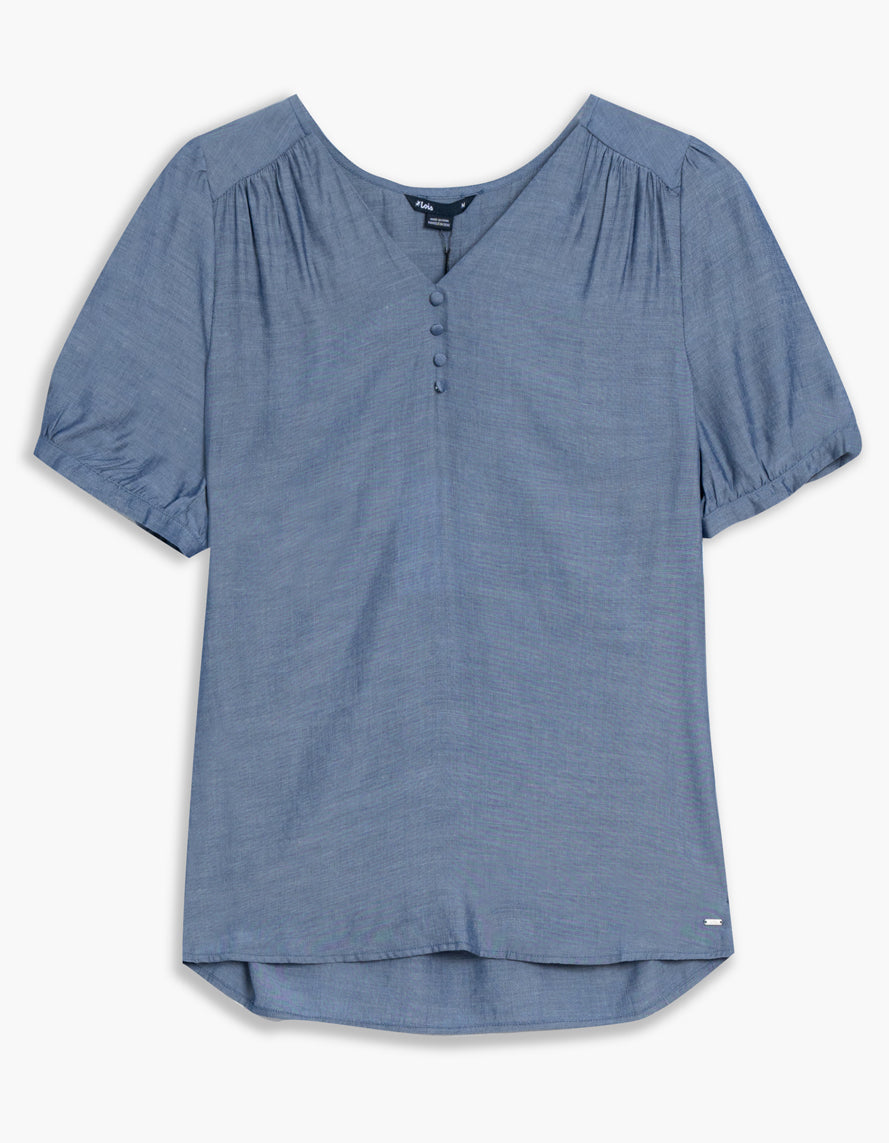 Pour un look à la fois romantique et fonctionnel, nous vous suggérons la blouse à manches courtes JASMINA! Avec ses détails de fronces aux épaules et aux manches, ce haut est à la fois classique et tendance.
