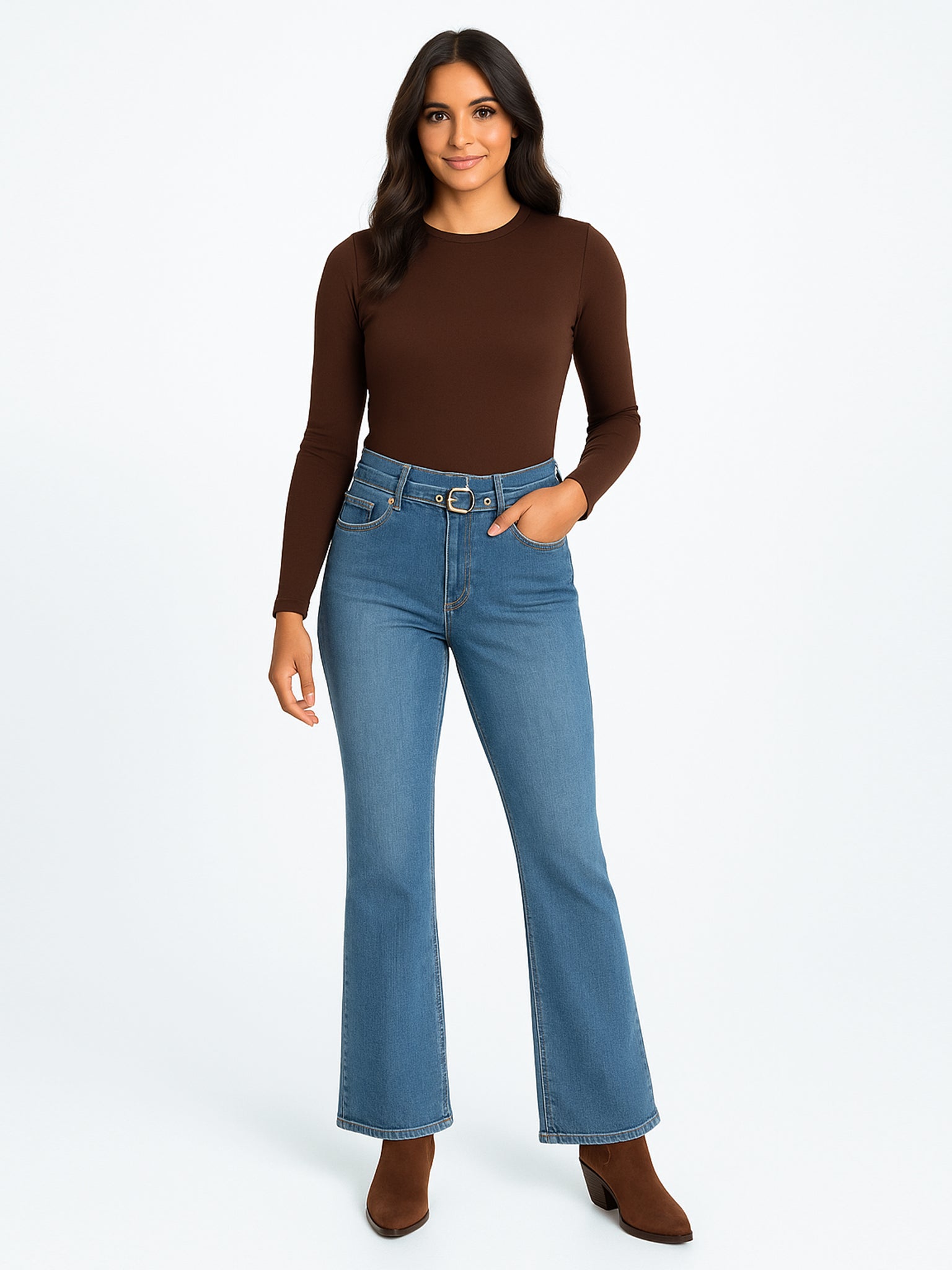 Une coupe amincissante ceinturée et un denim extensible font de ce jean à jambe évasée ERIKA FLARE un choix tendance et contemporain pour vos looks décontractés. La jambe plus large a fière allure avec des talons ou des bottines.