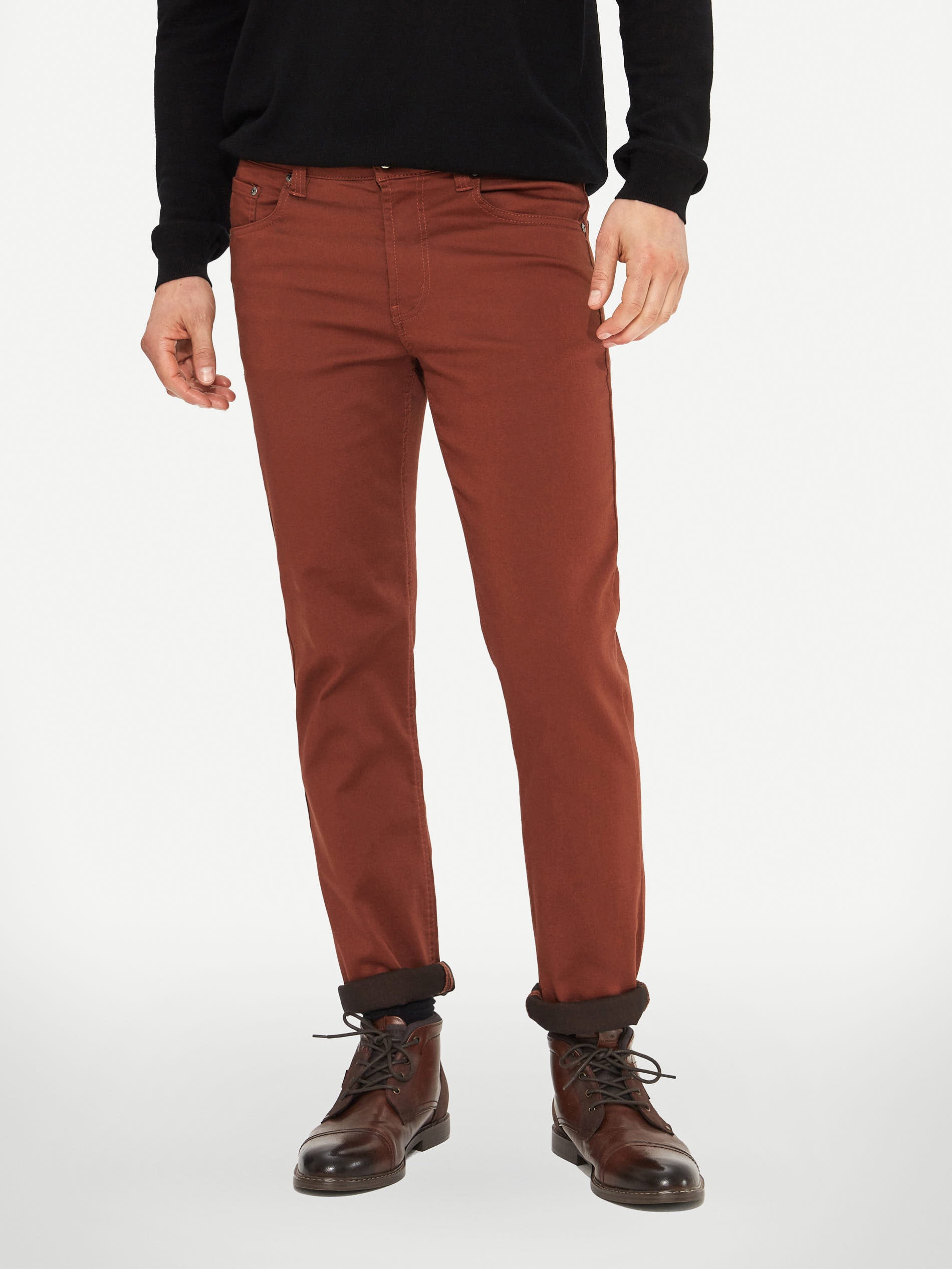 L'intemporel pantalon twill à porter encore et encore. Toile légère et extensible au doux toucher effet peau de pêche. Découvrez ce BRAD SLIM à la coupe droite et jambe étroite, conçu d'un coton extensible tout confort.