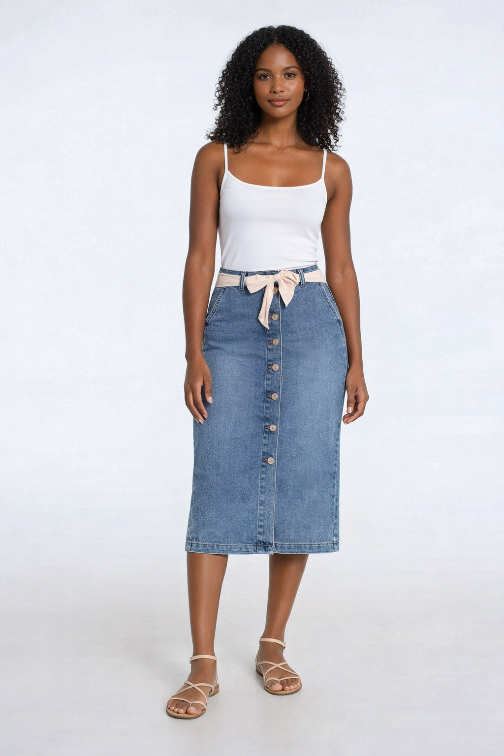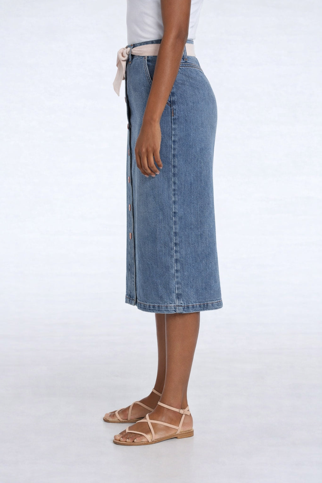 La jupe de denim DAISY avec son foulard décoratif, un classique dans votre garde-robe! Son tissu extensible ultra-doux et son ouverture boutonnée au devant vous apporteront style et confort tout au long de la journée!
