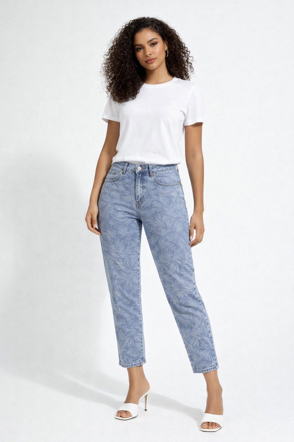 Une silhouette décontractée et courte dans un denim extensible et léger pour un look estival actuel. Ce pantacourt GIGI ANKLE se démarque par son motif ton-sur-ton tropical.